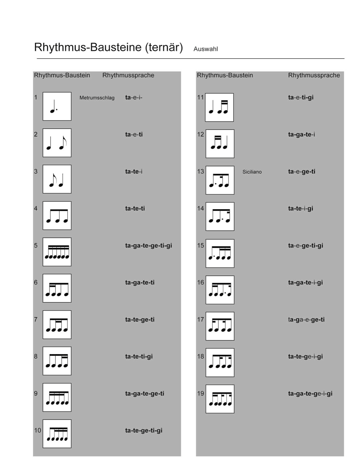 Übersicht der Rhythmen